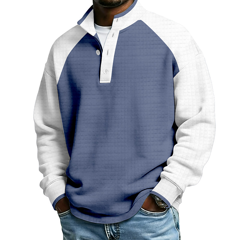 Men's Color Block Color Gradient Waffle Sweatshirt Fashion Daily Casual High Neck Home Outdoor Streetwear Office Blue Purple Green Dark Blue Buttons Fall Winter Designer S M L XL XXL XXXL