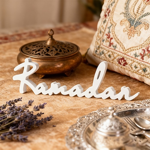 Minimalistische Wohndekoration in Weiß für Ramadan und Eid – Buchstaben aus Acryl/Chiffon, festliche Tischdekoration, perfekt für die Feierlichkeiten zu Ramadan und Eid al-Adha.