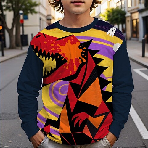 Halloween Jungen 3D Dinosaurier T-Shirt Langarm Frühling Herbst Mode Basic Kinder 4-12 Jahre Rundhalsausschnitt Outdoor Lässig Täglich Normale Passform