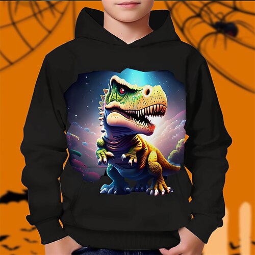 Halloween Jungen 3D Dinosaurier Kapuzensweatshirt Langarm Frühling Herbst Mode Streetwear Kinder 4-12 Jahre Mit Kapuze Outdoor Lässig Täglich Normale Passform