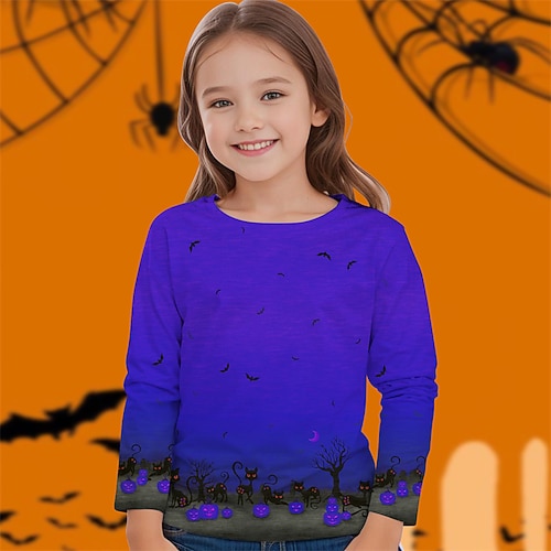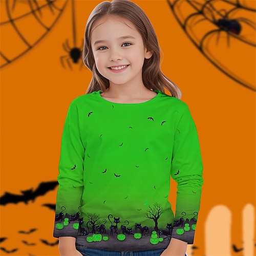 Halloween Mädchen 3D Kürbis T-Shirt Langarm Frühling Herbst Mode Basic Kinder 4-12 Jahre Rundhalsausschnitt Outdoor Lässig Täglich Normale Passform
