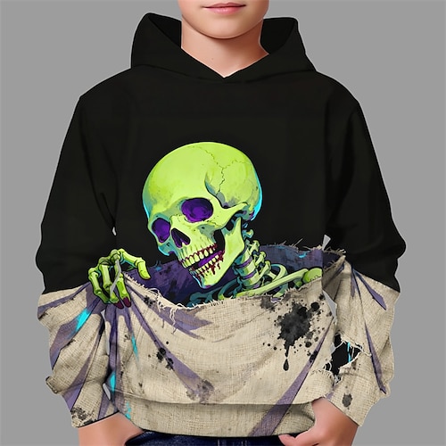 Halloween Jungen 3D Schädel Kapuzensweatshirt Langarm Frühling Herbst Mode Streetwear Kinder 4-12 Jahre Mit Kapuze Outdoor Lässig Täglich Normale Passform