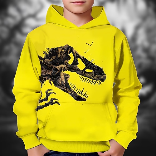 Jungen 3D Dinosaurier Kapuzensweatshirt Langarm Frühling Herbst Mode Streetwear Kinder 4-12 Jahre Mit Kapuze Outdoor Lässig Täglich Normale Passform