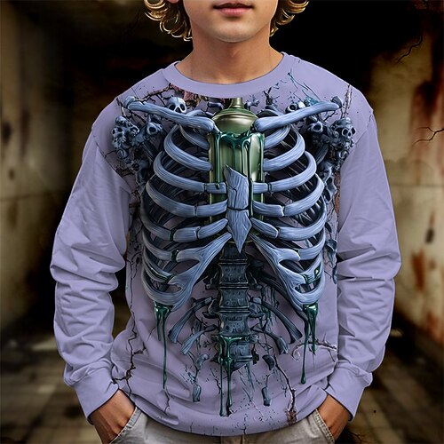 Halloween Jungen 3D Schädel T-Shirt Langarm Frühling Herbst Mode Basic Kinder 4-12 Jahre Rundhalsausschnitt Outdoor Lässig Täglich Normale Passform