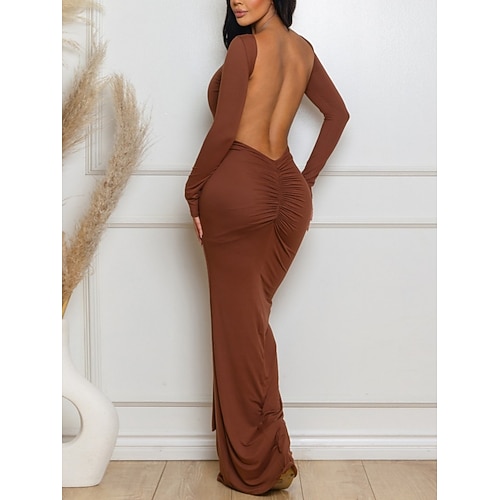 Per donna Abito maxi Abito Bianco Abito da laurea Abito aderente Elegante Moda Moderno All'aperto Vacanza Uscire Vestibilità regolare Semplice Manica Lunga Girocollo Scollo a V Bianco Giallo Rosso