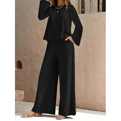 Per donna Set da due pezzi Set di Pantaloni Bolero Top Manica Lunga Girocollo Semplice Moda Streetwear Casuale Quotidiano All'aperto Blu Nero Bianco Primavera Vestibilità regolare