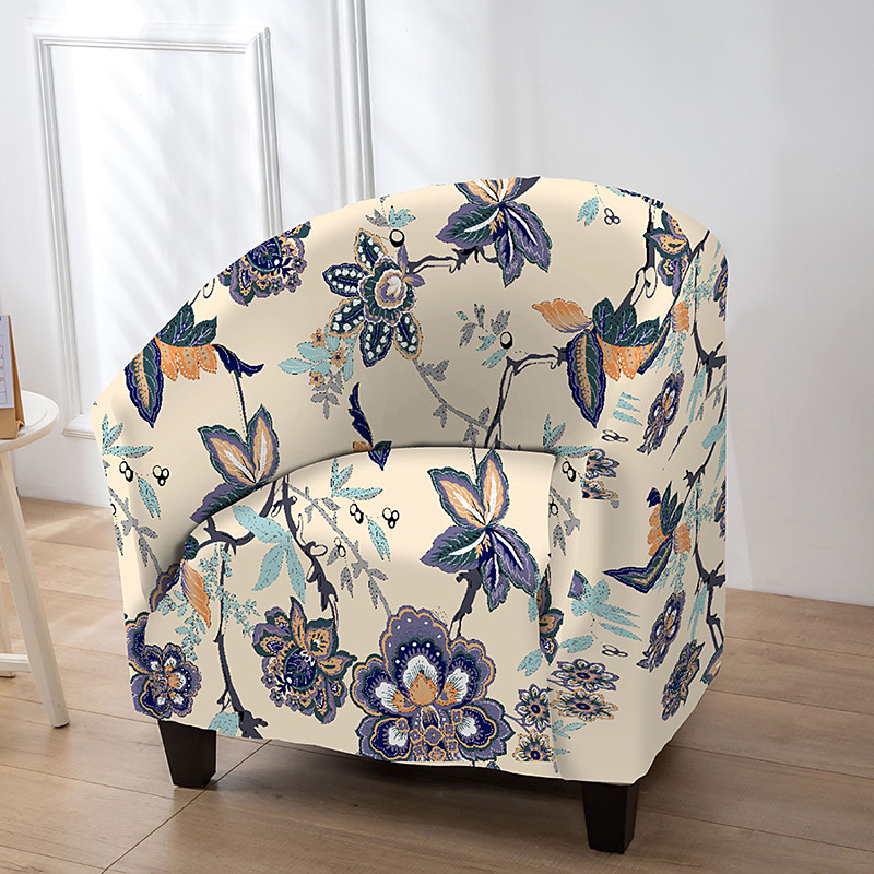 Club Chair Cover Striped Plant and Geometric Printed Polyester Slipcover for Living Room Bedroom and Home Office