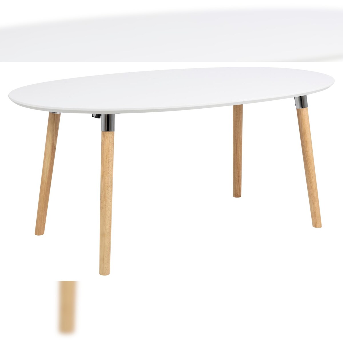 Belle Esszimmertisch 100 x 170/270 cm mit 2 Zusatzpl. in weiss mit Pincon Beinen, Chrom Beschlag.