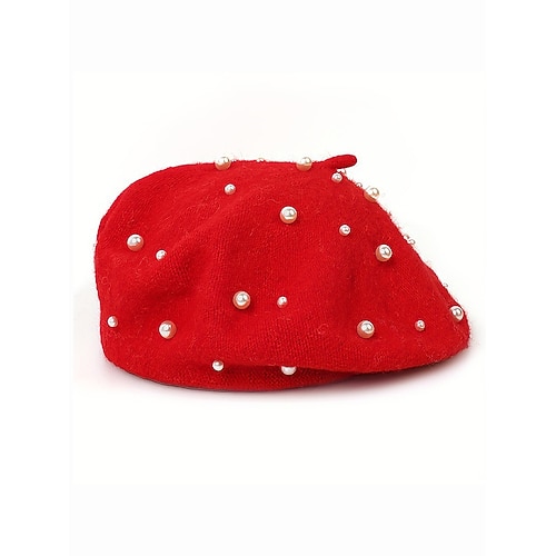 Cappello da donna in finto cashmere natalizio, elegante cappello invernale decorato con perle, berretto caldo e morbido in stile francese per le feste, le feste e l'uso quotidiano, opzioni multicolore
