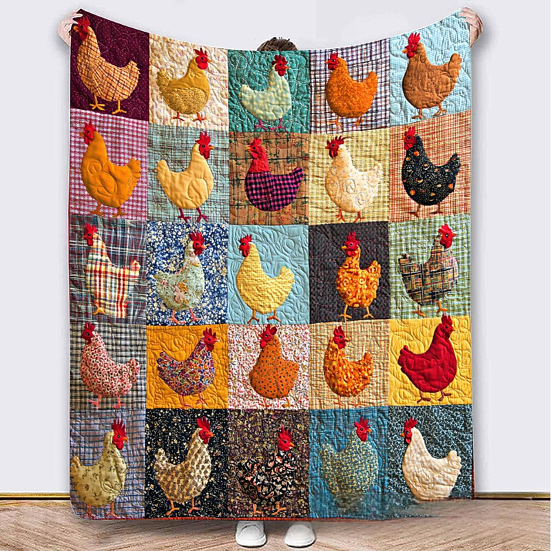 Cozy Vintage Rooster Plaid Blanket Soft, Lightweight Farmhouse Charm for All Seasons Perfect Gift Everyday Comfort