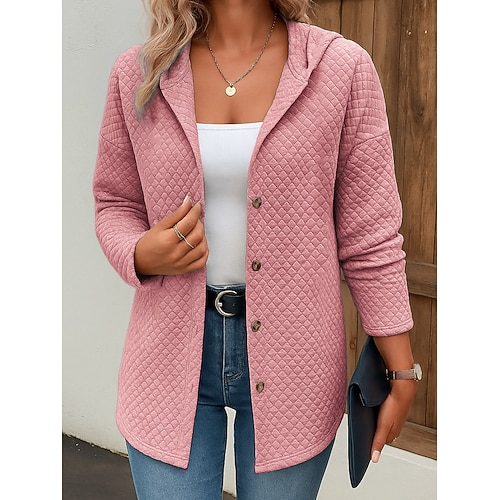 Women's Winter Coat Winter Jacket Comfortable Breathable Pocket Buttons Print Casual Plaid Formal Vacation Street Casual Single Breasted Long Turndown Regular Fit Long Sleeve Outerwear Plaid Spring