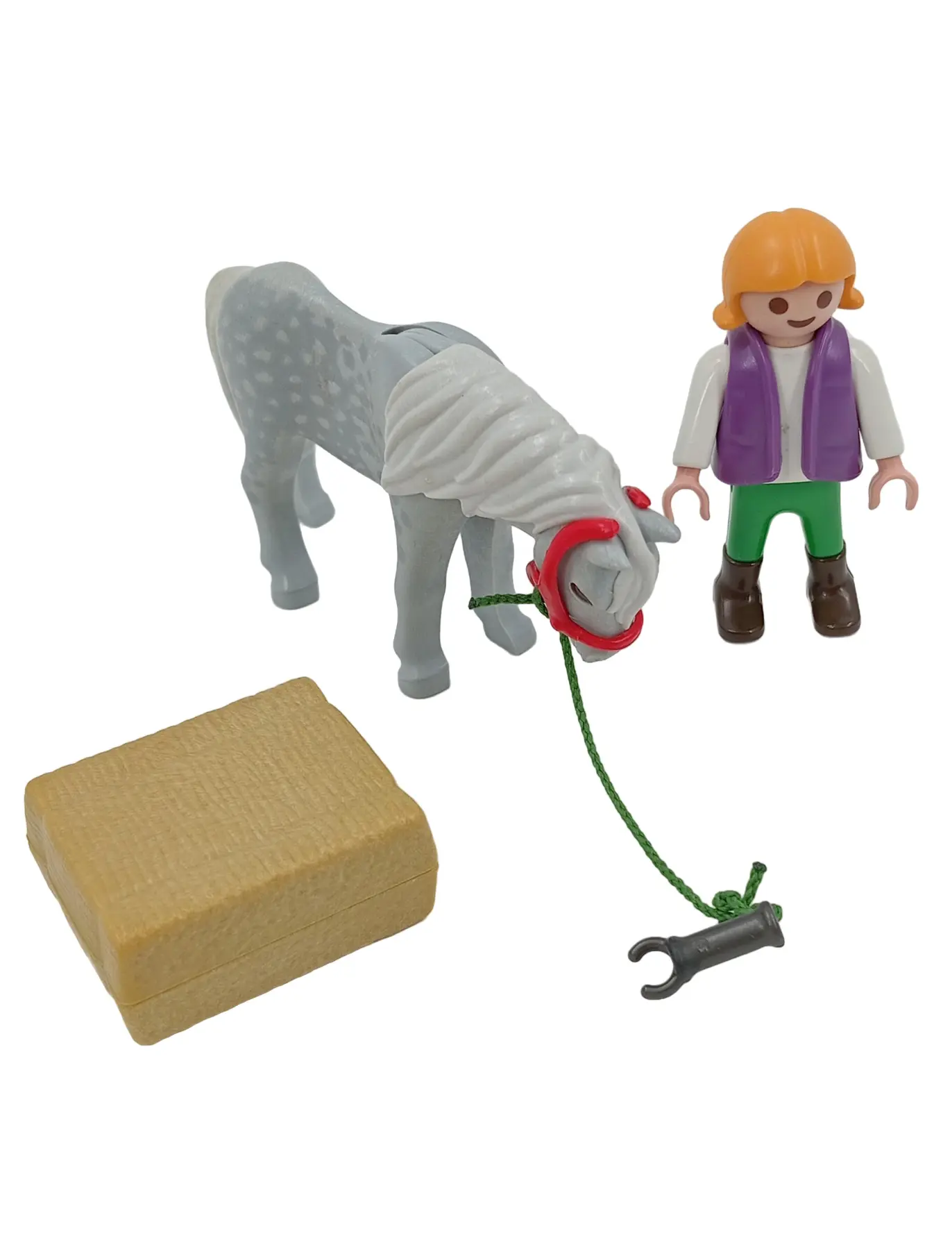 PLAYMOBIL Spielfigur Pferd mit Kind und Heuballen