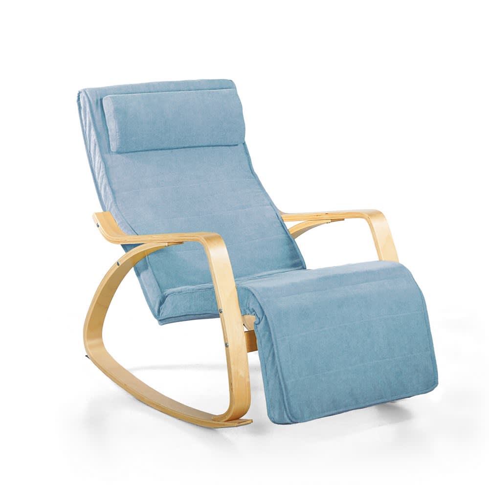 Poltrona a dondolo Jeans con poggiapiedi in legno di betulla