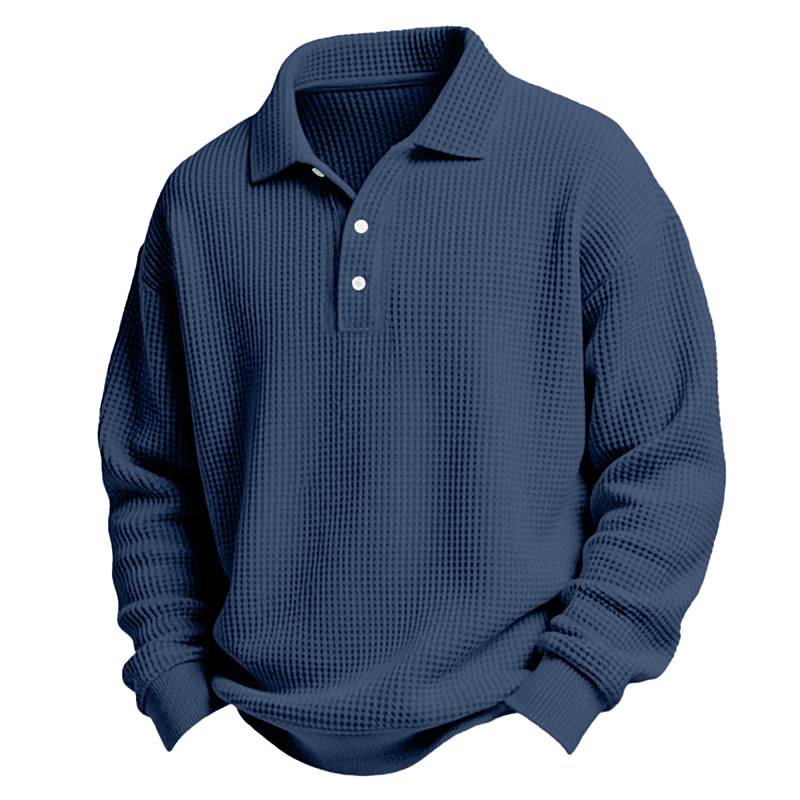 Men's Waffle Polo Shirts Textured Casual Holiday Lapel Long Sleeve Cool Plain Classic Style Fall Spring Fall All Seasons Regular Fit White Light Green Light Blue Red Navy Blue Purple Waffle Polo