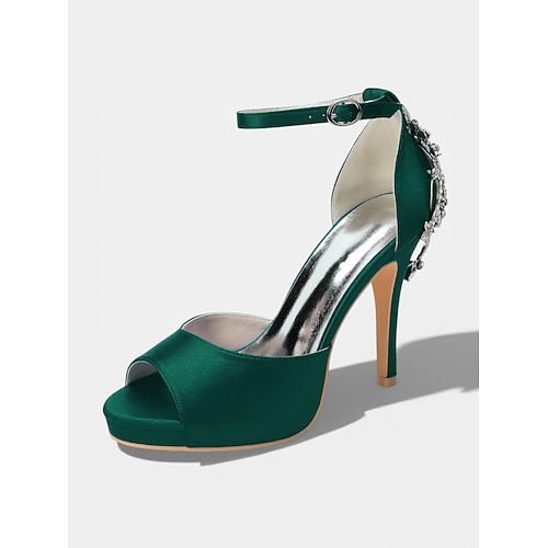 sandali da donna con tacco a spillo, cinturino alla caviglia in raso avorio e dettaglio posteriore in cristallo, eleganti tacchi da sposa per spose che si sposano in città