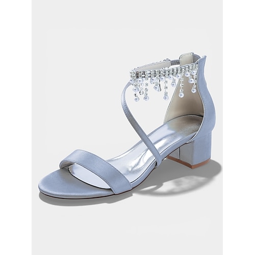 sandali da donna con tacco a blocco, cinturino alla caviglia color avorio e nappe di cristallo, eleganti scarpe da sposa per spose che si sposano in città