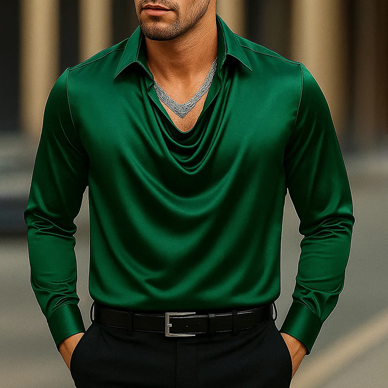 Men's Shirt Silk Like Satin Shirt Casual Shirt Plain Formal Wedding Black Wine Navy Blue Gold Long Sleeve Cowl Neck Spring Fall All Seasons Clothing Apparel Ruched