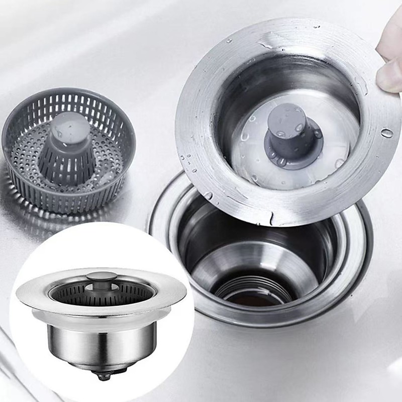 2pcs Stainless Steel Pop-Up Sink Drain Stopper – Press-Down Strainer Plug, Anti-Clog, Universal Kitchen Basin Filter
