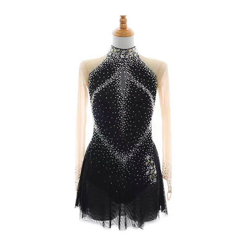 Eiskunstlaufkleid Damen Mädchen Eislaufen Kleid Schwarz Patchwork Daumenloch Netzstoff Spandex Dehnbar Training Übung Professionell Eiskunstlaufkleidung Thermowarm Kristall / Strass Langarm Eislaufen