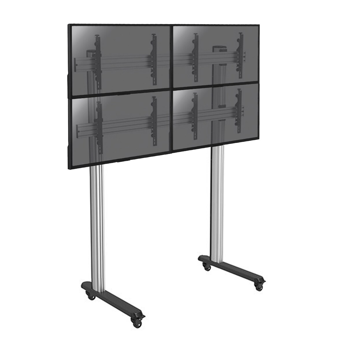 KIMEX - Standfuß für Videowand für 4 TV-Bildschirme 45''-55'' - Höhe 240cm - Auf Rollen