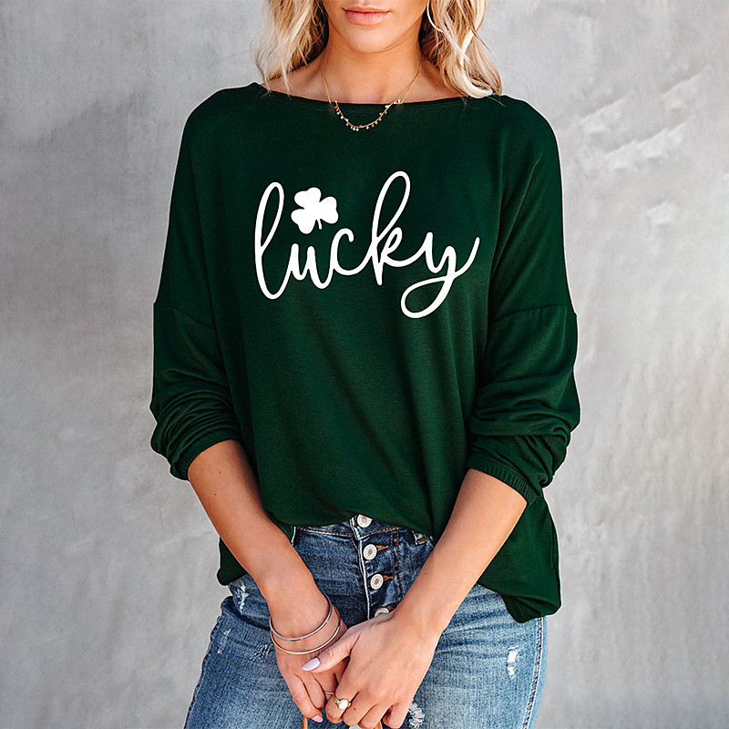 St. Paddy's Day St. Patrick's Day Women's T Shirt Shamrock Fashion Long Sleeve Round Neck Regular Tops Casual St.Patrick's Day Print Grass Green Light Green Army Green Dark Green Green Spring Fall
