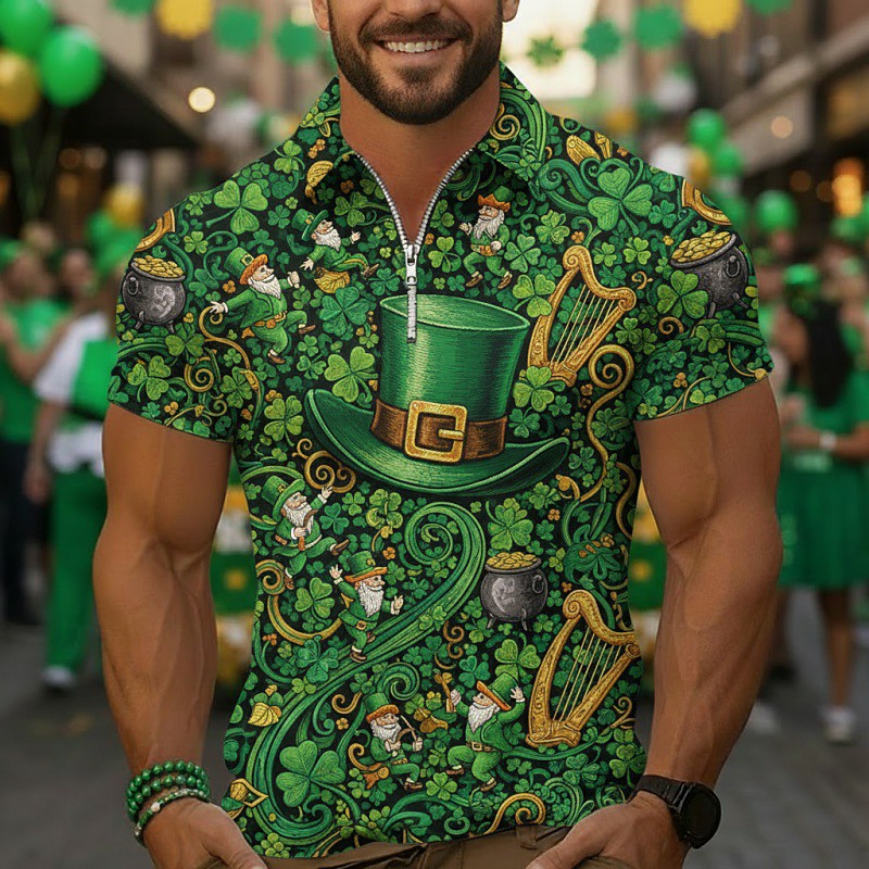Men's Polo Polo Shirts Daily Saint Patrick Day Quarter Zip Short Sleeve Fashion Basic Graphic Shamrock 3D Print Summer Spring Slim Fit Depression Green Forest Green Green Light Green Polo