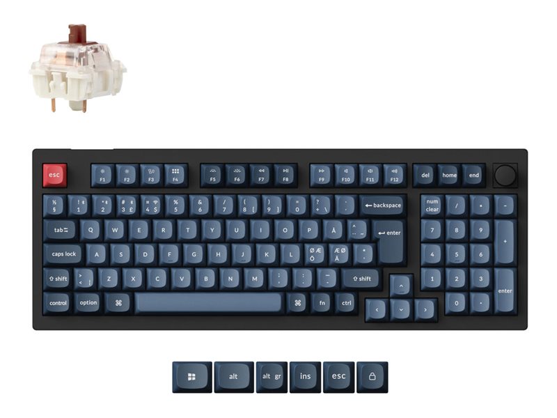 Keychron V5 Max - Tastatur - QMK, custom mechanical, ISO layout collection - med knott - bakgrunnsbelyst - trådløs - USB-C, 2.4 GHz, Bluetooth 5.1 - QWERTY - Nordisk - tastsvitsj: Gateron Jupiter Brown (Hot-swappable) - karbon sort