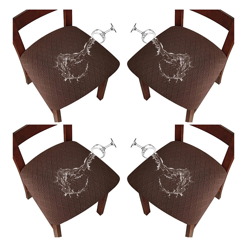 4 Pcs Stretch Jacquard Seat Covers for Dining Room Water Repellent Chair Cushion Cover, Removable Washable Dining Chair Covers Anti-Dust Dining Room Chair Covers Seat Cushion Slipcovers