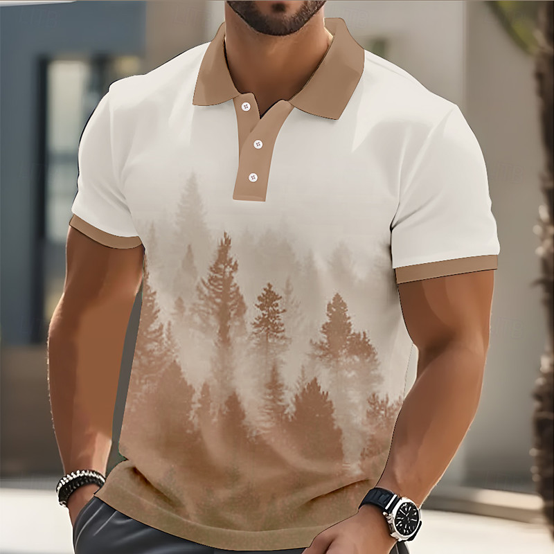 Men's Tree Polo Short Sleeve Polo Shirts Collared Shirts Casual School Outdoor Daily Wear 3D Print Summer Blue Brown Green