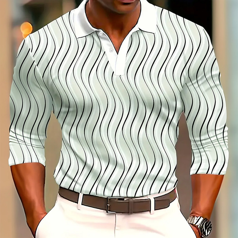 Men's Geometic Line Polo Long Sleeve Polo Shirts Collared Shirts Business Casual Business Athleisure 3D Print Spring Fall Winter Green