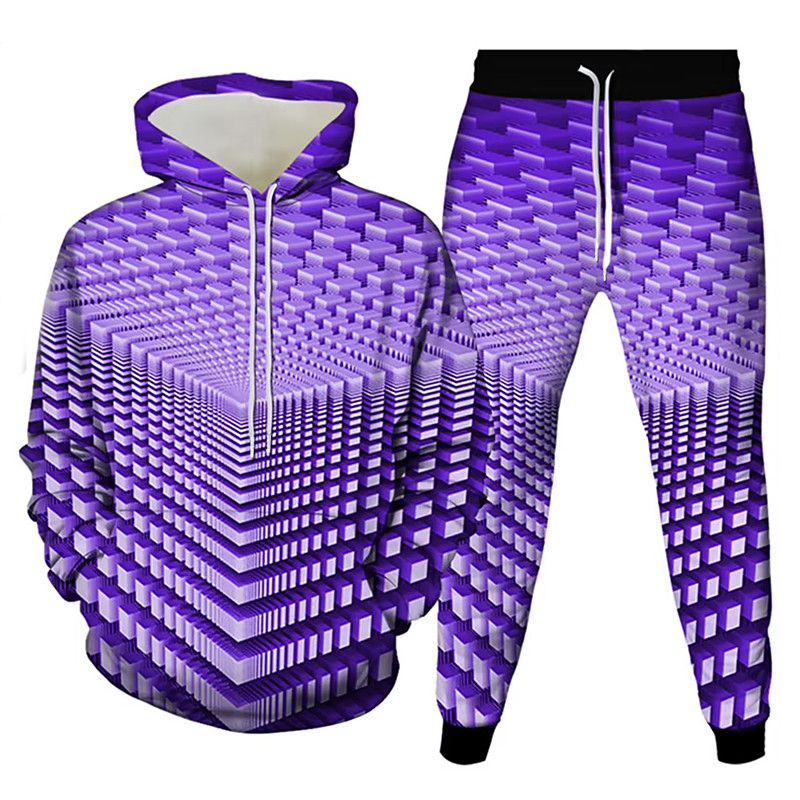 Men's Geometric Optical Illusion 2pcs 3D Sweatshirt Sets Tracksuit Hoodie Sweatshirt Long Sleeve Long pants Hooded Casual Daily Athleisure 3D Print Spring Fall Winter Yellow Green Red