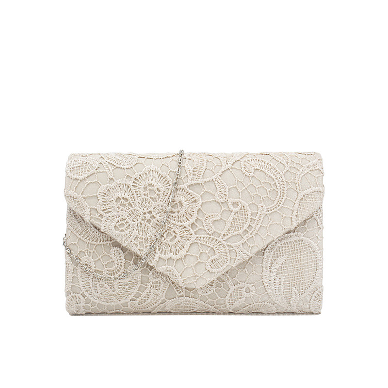Women's Lace Evening Clutch Bag with Chain Strap, Elegant Floral Design, Available in Multiple Colors for Weddings, Parties and Formal Events
