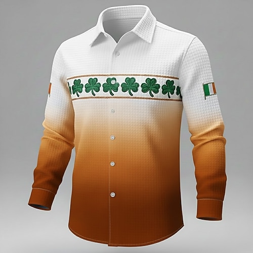 Festa di San Patrizio Per uomo Trifoglio Colore sfumato Bandiera irlandese Camicia Camicia a nido d'ape Camicia casual Manica Lunga Vintage Retrò Ferie Estate Primavera Collo ripiegato Stampa 3D