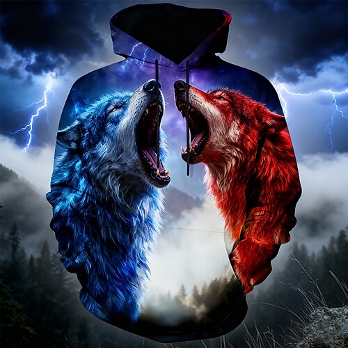 Per uomo Lupo Felpa con Cappuccio Felpa 3D Fantasia Manica Lunga Girocollo Regalo Club Abbigliamento casual alla moda Blu 1 Blu 2# Coulisse Autunno Inverno progettista S M L XL XXL XXXL