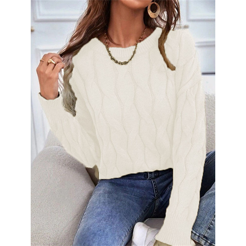 Women's Sweater Pullover Sweater Jumper Casual Soft Pure Color Cable Crew Neck Knitted Long Sleeve Regular Tops Knit Outdoor Daily Weekend Orange Khaki Fall Winter