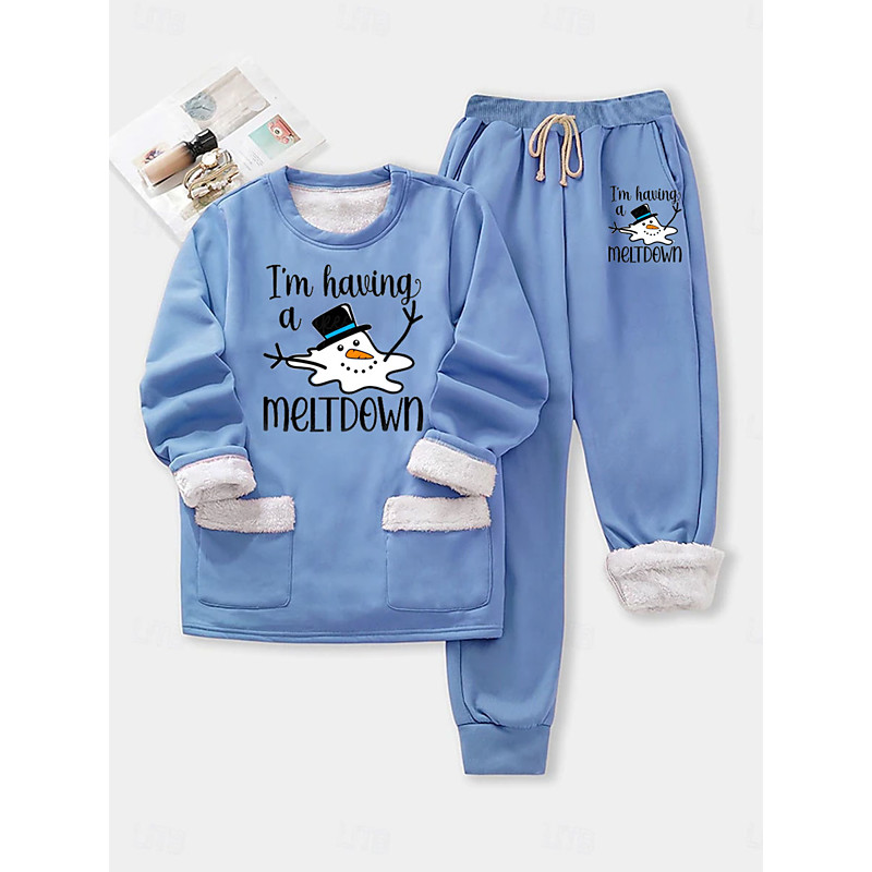 Women's Warm Daily Two Piece Sets Tracksuit Pants Sets Long Sleeve Crew Neck Graphic Geometric Letter Drawstring Print Casual Daily Pink Blue Gray Fall Regular Fit