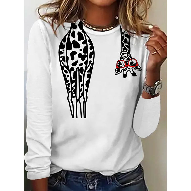 Women's T Shirt Graphic Animal Giraffe Vintage Fashion Stylish Short Sleeve Long Sleeve Crew Neck Round Neck Regular Tops Daily Weekend Print Black White Pink Green Khaki Summer Spring Fall