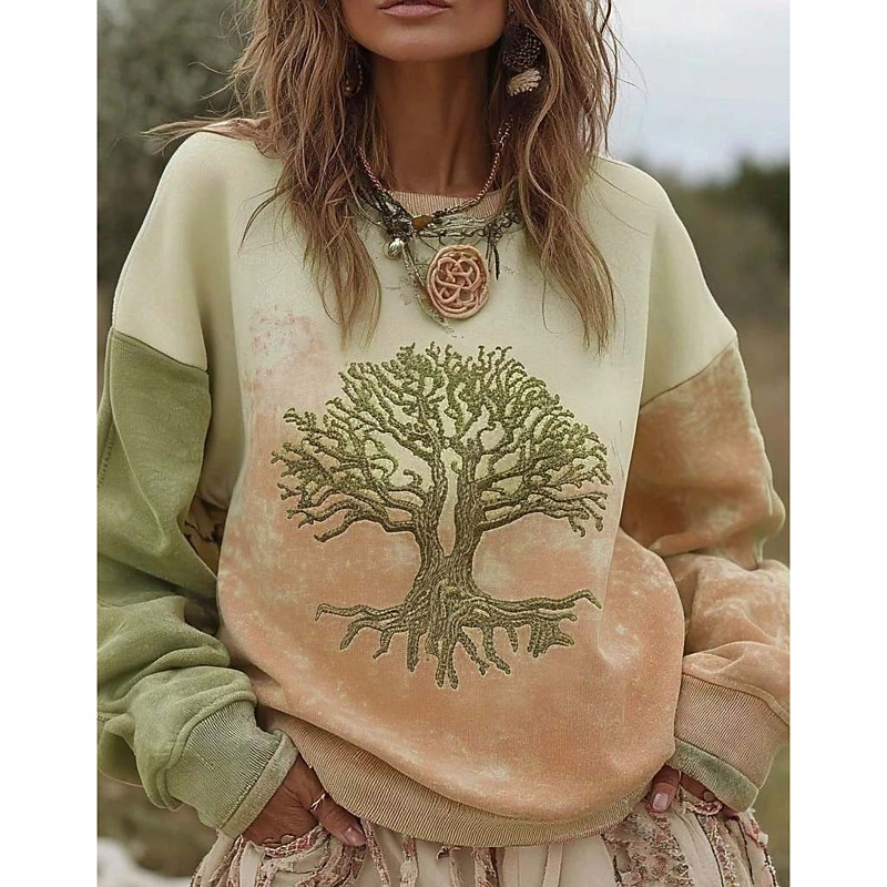 Women's Pullover Sweatshirt Zip Up Sweatshirts Floral Graphic Tribal Fashion Casual Long Sleeve Crew Neck Regular Tops Street Dailywear Zipper Print Black Purple Green Spring Fall Winter