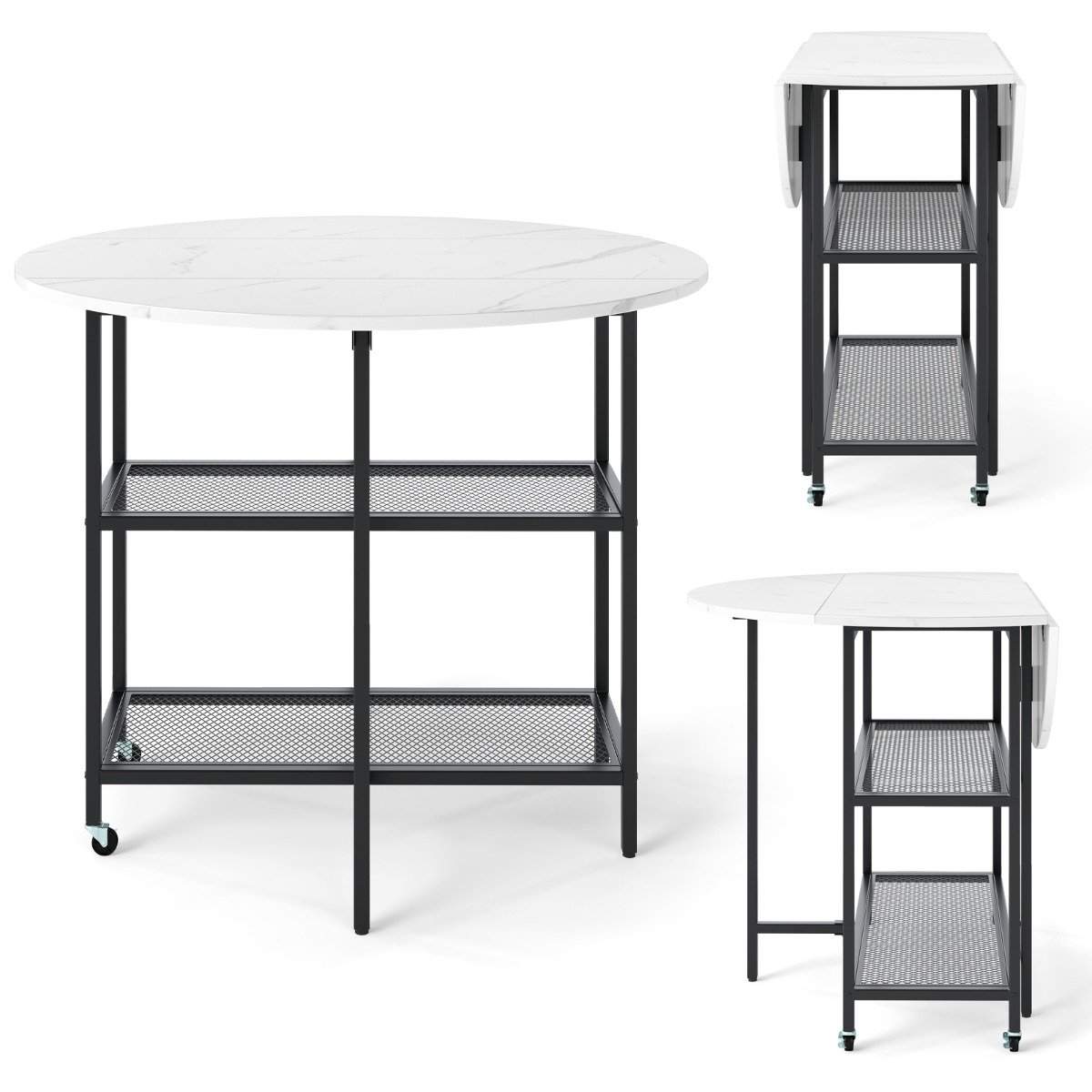 Taitettava ruokapöytä – Marble Look, siirrettävä, istuimet 2-4