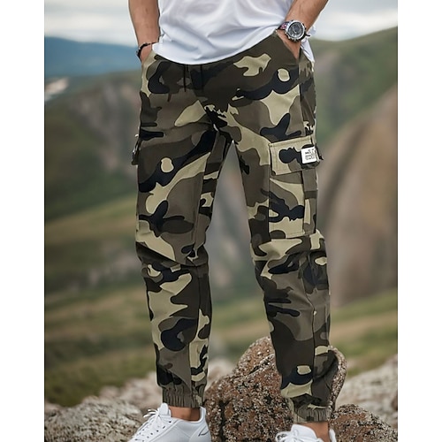 Herren Cargo-Hosen Hose Camo-Hosen Kordelzug Elastischer Bund Mehrere Taschen Tarnung tragbar Outdoor Täglich Campen und Wandern Mode Klassisch Schwarz Armeegrün