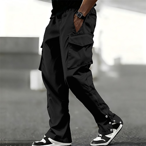 Herren Cargohose Cargohosen Hose Hosen Kordelzug Elastische Taille Multi Pocket Glatt tragbar Outdoor Täglich Campen und Wandern Modisch Klassisch Schwarz Weiß