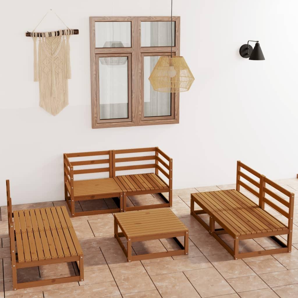 Loungesæt til haven 5 dele med hynder massivt fyrretræ