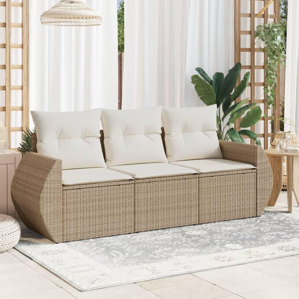 Sofasæt til haven 3 dele med hynder polyrattan beige