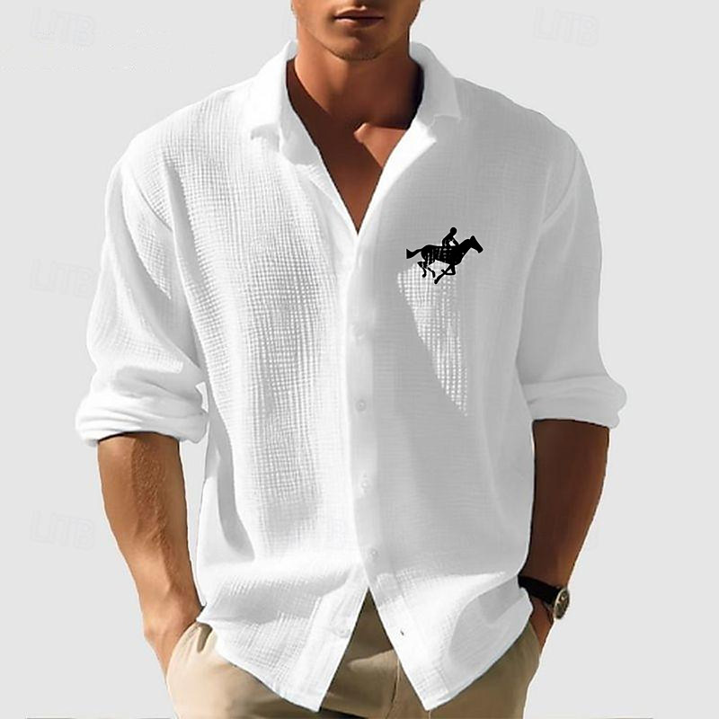 Men's Waffle Shirt Summer Shirt Casual Shirt Waffle Knit Shirt White Light Green Pink Dark Gray Apricot Long Sleeve Textured Fashion Turndown Vacation Holiday Clothing Apparel Cotton Fashion Work