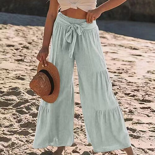 Per donna Pantaloni Eleganti Pantaloni Casual Lunghezza intera Naturale Semplice Elastico in vita Spacco Comodo Confortevole All'aperto Uscire Rosso Rosso scuro Verde foresta Blu cielo chiaro Estate