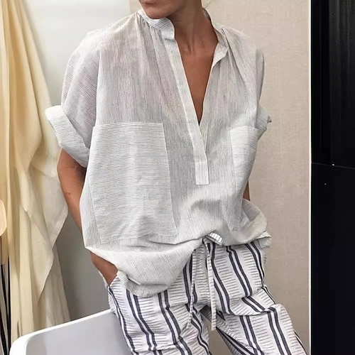 Per uomo Camicia Camicia elegante Camicia con Bottoni A righe Matrimonio Quotidiano Blu Azzurro cielo Grigio chiaro Grigio Manica Corta Collo ripiegato Estate Abbigliamento