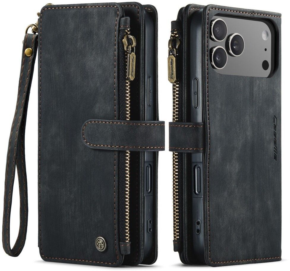 Phone Case For iPhone 17 Pro Max 17 Air 16 15 14 Pro Max Plus 13 Pro Max Mini Wallet Case Flip Cover Zipper with Wrist Strap Shockproof PU Leather