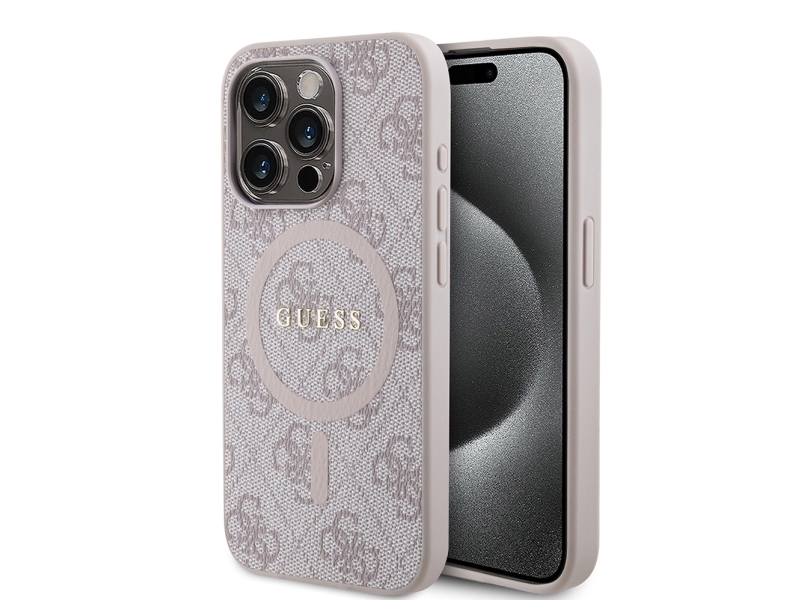 Aito GUESS GUHMP15XG4GFRP etupaneeli Kotelo iPhone 15 Pro Max (yhteensopiva Magsafe / 4G Ring klassinen logo / vaaleanpunainen)
