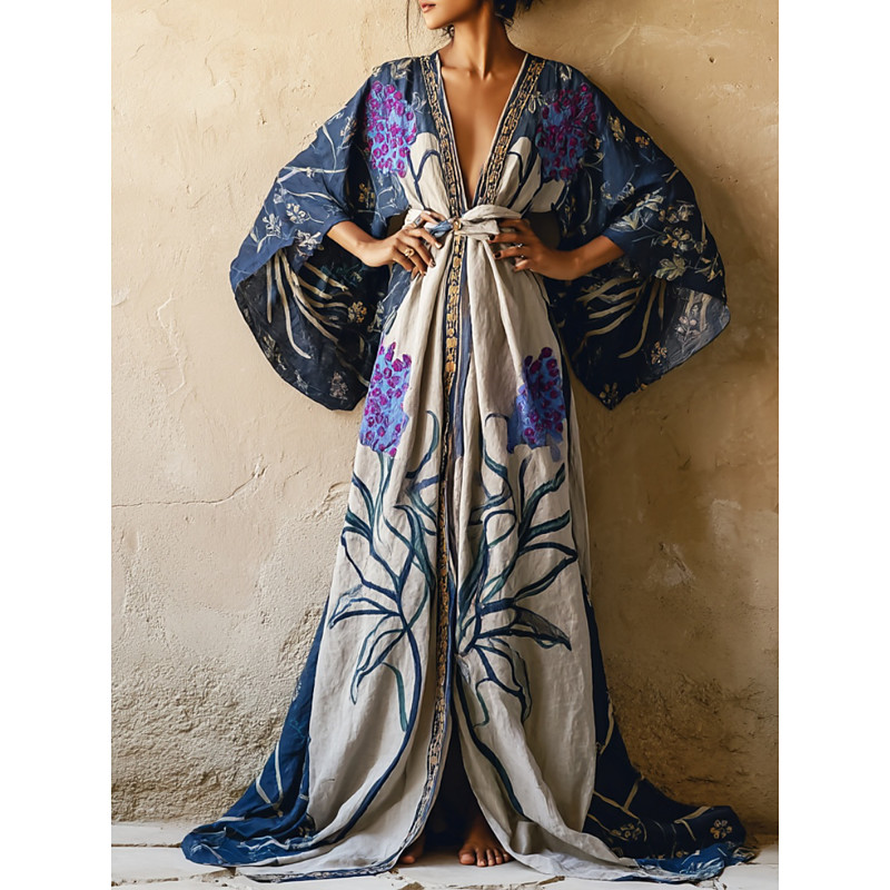 Women's Long Dress Maxi Dress Boho Dress Casual Dress Swing Dress Summer Dress Vintage Vacation Daily Beach Regular Fit Floral Long Sleeve V Neck Purple Summer Spring Fall