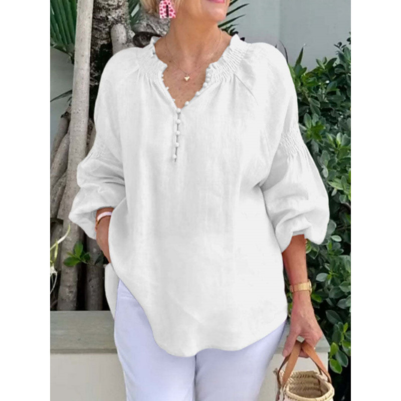 Women's Blouse Solid Color Daily Casual Long Sleeve V Neck Long Tops Daily Buttons Blue Black White Pink Spring Fall